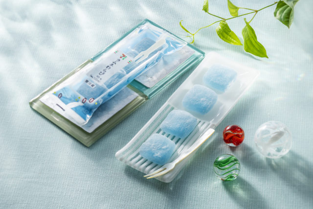 ◆特 長:ラムネ味のわらび餅が、食べやすい一口サイズで登場。わらび餅にラムネフレーバーと酸味のあるレモン果汁を加え、さっぱりとした味わい。夏にぴったりの爽やかな水色は、見た目からも涼しさを感じる一品。