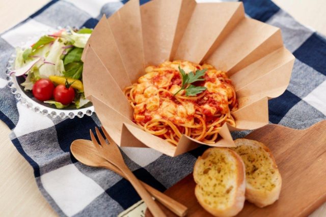 対象商品はトマトとモッツァレラチーズのパスタ「モッツァトマト(830 円+税)」を含むどれも人気のパスタ11種類。開けると花が咲いたような容器を使ったテイクアウトのパスタは、見た目も華やかでホームパーティーにもぴったり。