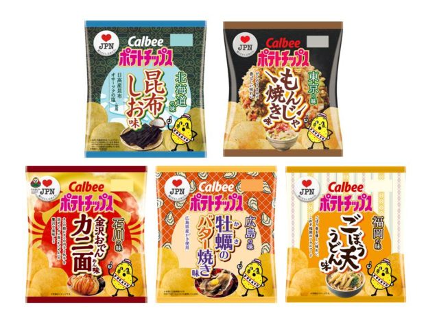 カルビー株式会社は、47都道府県の「地元ならではの味」を開発する「♥ JPN(ラブ ジャパン)」プロジェクトを発足し、2017年度に3回に分けて47都道府県の味のポテトチップスを順次発売した。
