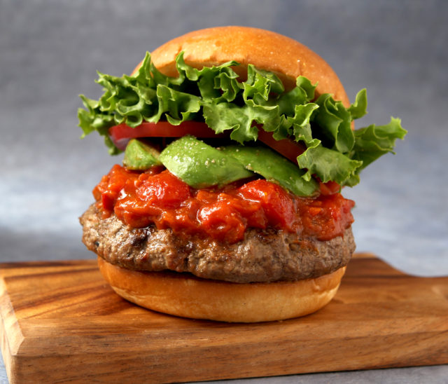 詳細:野菜の旨みをたっぷりとじこめ、5種類のスパイスを使ったスパイシートマトソースを使用。チェリートマトとフレッシュトマトの果肉の食感や、辛味と爽やかな甘みが感じられ、濃厚なモッツァレラチーズとの相性抜群。暑い夏にぴったりのスパイシーバーガーとなっている。