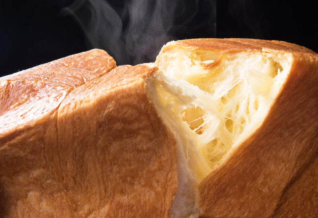 「MIYABI」”ミヤビ”は、約30年前に京都・祇園のパン職人が「クロワッサン」のような美味しい食パンができないかと試行錯誤のうえ誕生したデニッシュ食パン。芳醇なバターの香りと外はサクサク中はしっとりふわふわとした食感が特徴で、通常の食パンなら4~5時間でできるところを、熟練のパン職人が妥協することなく10~11時間かけて一本一本丁寧に焼きあげる。また、このMIYABIは「宮家献上品」でもあり、毎月宮家に献上している逸品。一度食べたら忘れられない上品な甘さとバターリッチな美味しさが口コミで広がり大人気となっている。