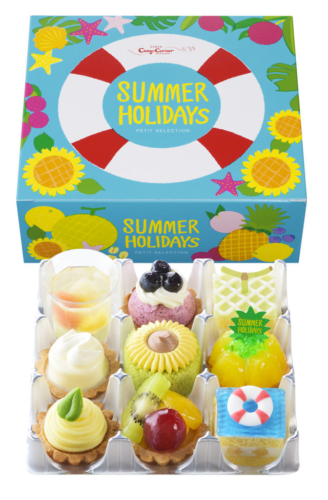 株式会社銀座コージーコーナーは、2018年7月13日~8月23日の間、全国の生ケーキ取扱店舗で、新作プチケーキセット「サマーホリデー(9個入)」を販売する。