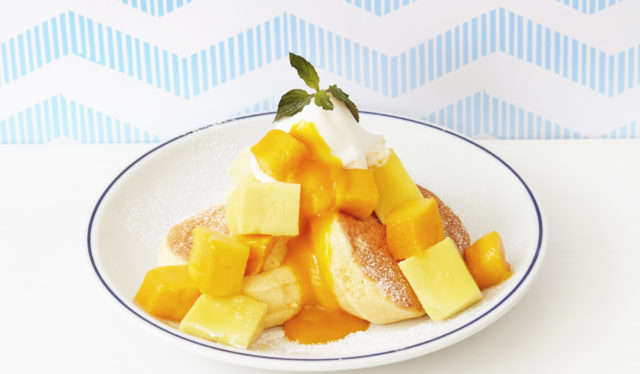 2Fでは、中目黒店限定メニューとして、旬のマンゴーを使った「奇跡のパンケーキ マンゴー」が登場。2種の果肉と、マンゴーソルベをトッピングしたマンゴーづくしの一皿。