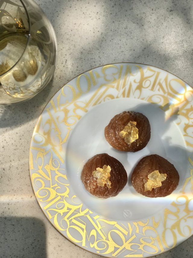 一つ一つ選別しながら職人の手で丁寧に甘皮を剥いたマロンをレモンリキュールに浸し、イタリア産レモンダイスを上にのせました。