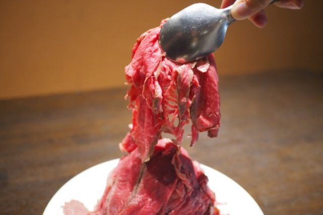 掴み取りをしたローストビーフはお皿に盛って、その場で食べることができるようになっています。特製のソースや岩塩、わさびをつけて楽しむことができるようになっています。