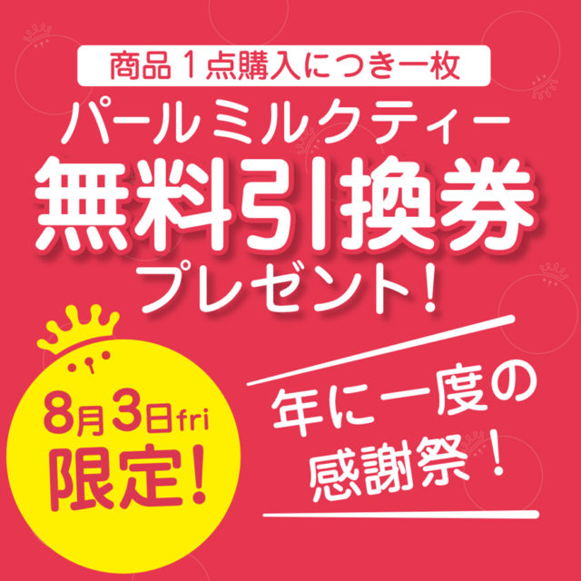 キャンペーン内容:商品購入で「パールミルクティー無料券」をプレゼント