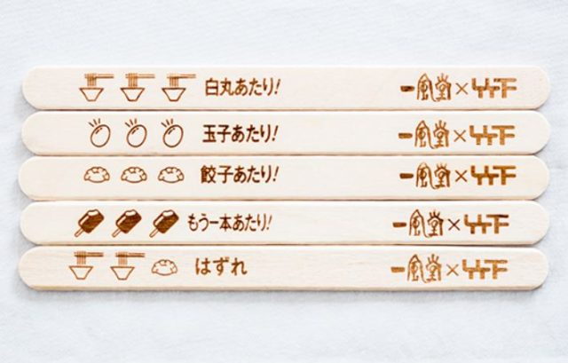通常の「ブラックモンブラン」は、もう1本「ブラックモンブラン」がもらえる「あたりクジ」を採用していますが、一風堂オリジナル「ブラックモンブラン」は「白丸元味」「半熟塩玉子」「博多ひとくち餃子」も「あたりクジ」でもらえる対象となっています。