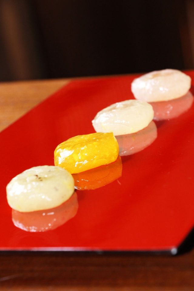 そのため、何度もわらび餅の弾力と果汁のトロみを調節し、ついに濃厚なフルーツ果汁を包み込むことに成功しました。