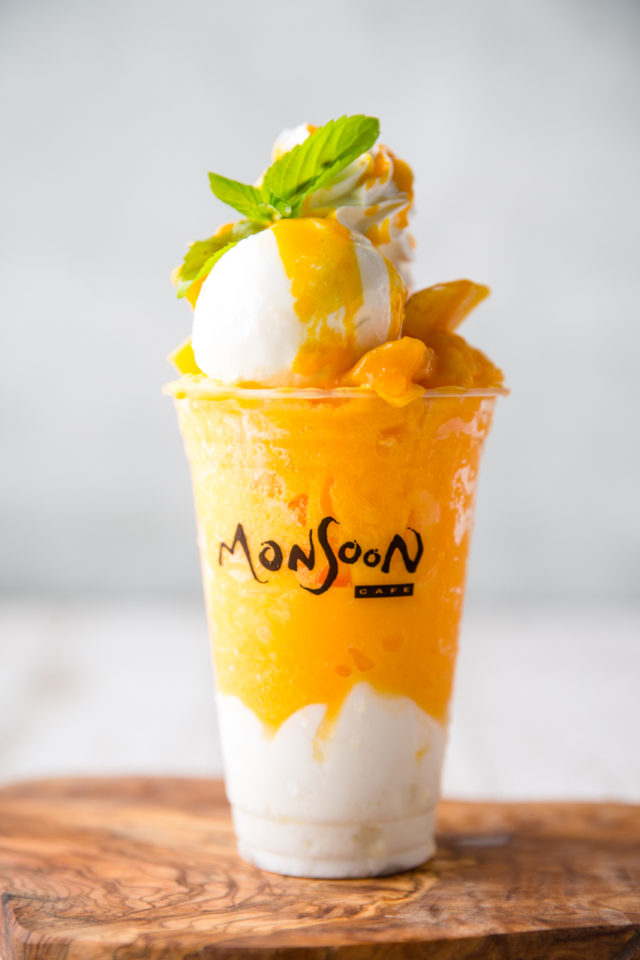 スパイスやハーブの効いたヘルシーエスニック料理を提供しているモンスーンカフェの夏スイーツ。今年は、涼感ひんやりスイーツドリンク4種の販売を開始。