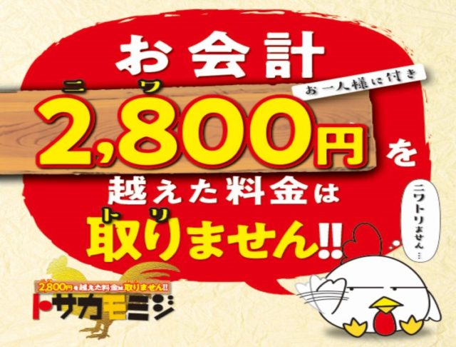 リーズナブルでこだわりの鶏メニューが評判のトサカモミジがお客様にもっともっと『お会計を気にせず、安心して楽しんでほしい』と始めたのが今回のコンセプトです。