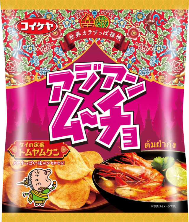 “辛くておいしい”「カラムーチョ」と“酸っぱくておいしい”「すっぱムーチョ」という辛味・酸味の両代表ブランドを持つ湖池屋として、アジア・エスニックの辛味×酸味を表現した新しい「ムーチョ」ブランドの新商品の開発に取り組み、魅惑的な辛酸っぱい味わいで高い人気を誇るタイの定番料理“トムヤムクン”をイメージした「アジアンムーチョ トムヤムクン」、クセになる辛酸っぱい味わいでファン急増中の地中海の定番調味料“ハリッサ”をイメージした「アラビアンムーチョ ハリッサ・ビーフ」を開発しました。