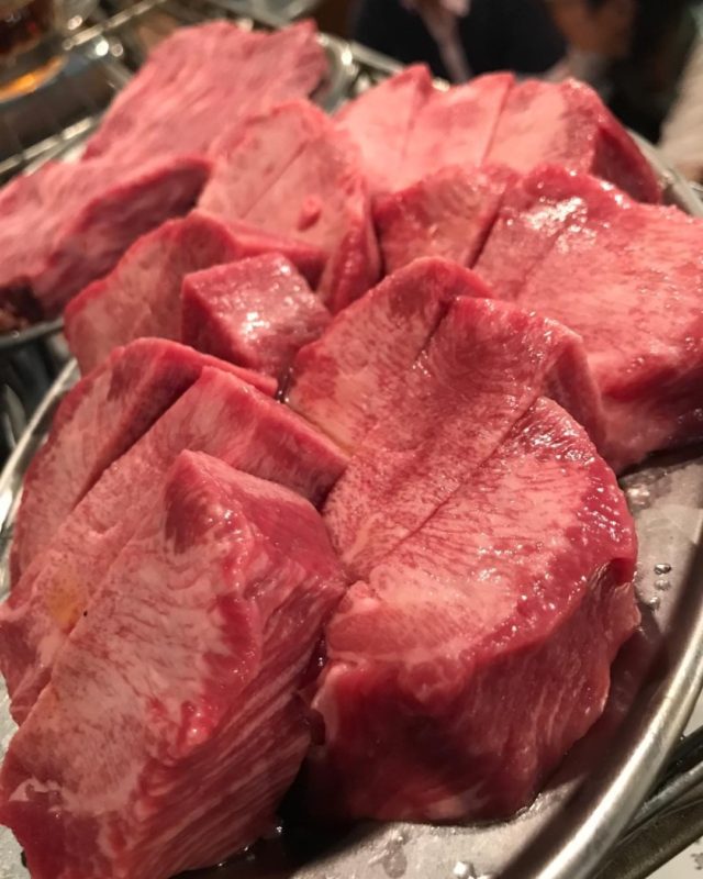 まずはこちらが名物「ワイルドタン」。驚異の厚切りです。人気が出過ぎたため、現在のところ「ワイルドタン+タン塩+タンシタ」のセット販売のみ受け付けているようです。ワイルドタン単品で注文が偏ると商品バランスが崩れてしまい、安定した提供が困難になるとのことでセット提供となりました。セットのタン塩も相当美味しそう!食べ比べセットっていいですよね。