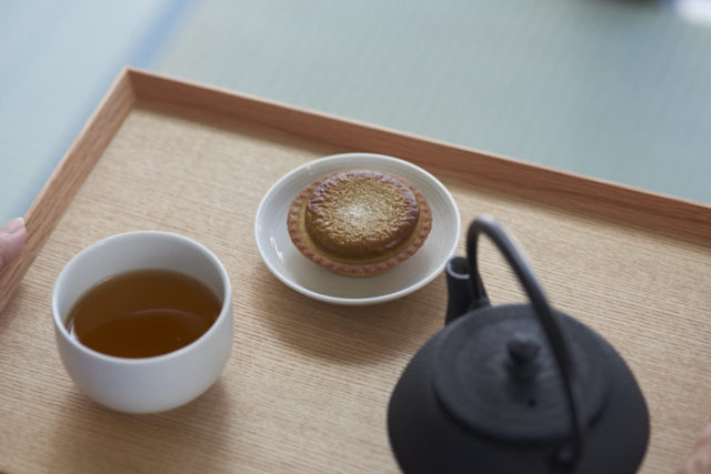 今回発売する商品は、石川県加賀市にある老舗「丸八製茶場」のほうじ茶「加賀棒茶 ほうじたて」を使用した香り高いチーズタルトとなっています。原材料や製法にもこだわり、旨味が凝縮された加賀棒茶を、ホワイトチョコレートとともにチーズムースと混ぜ合わせました。口の中に入れるとほうじ茶の香ばしい香りがふわりと広がり、両者の良さが引き立つバランスのとれた味わいに仕上げています。