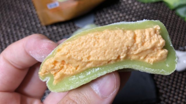 もちとろシリーズならではのもちもち生地に、本格的な赤肉メロンクリームがブワッと口の中に入ってくる感じがたまりません。メロンクリームはとても甘く、口の中に入るとすぐに溶けてしまうような口どけの良さでした。
