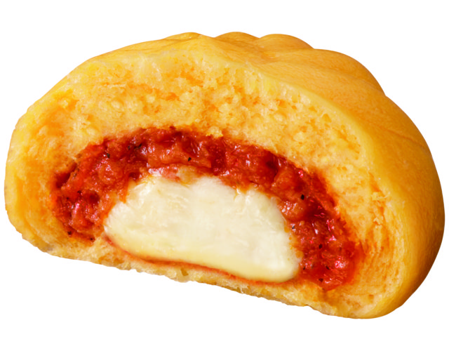 【内容】熟成発酵生地を使用し、生地だけで食べてもおいしさを感じていただける商品です。コクのあるゴーダチーズに加え、伸びの良いモッツァレラチーズを使用することで、ピザまんの醍醐味であるチーズの伸びをお楽しみいただけます。フレッシュ感のあるトマトソースのほのかな酸味がアクセントとなっています。また、ローストしたベーコンのエキスを新たに加えることで、ソースの味わいに深みを持たせました。