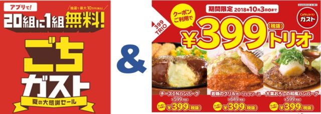 ガスト アプリのダブルキャンペーン「ごちガスト」に加え人気メニュー3種が399円に
