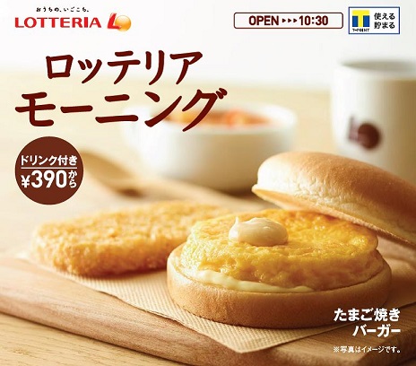 このたびロッテリアでは、秋の新生活がスタートするこの時期に合わせ、ふっくらたまごを使用した『たまご焼きバーガー』を新たなラインナップとして加え、モーニングメニュー全7商品で8月31日(金)より販売します。