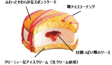 3. ちょっと甘酸っぱい苺の味わいと相性が良く、且つ、焼き菓子のインパクトに負けない存在感のある生クリームを使用したクリーミーなアイスクリームとなっています。