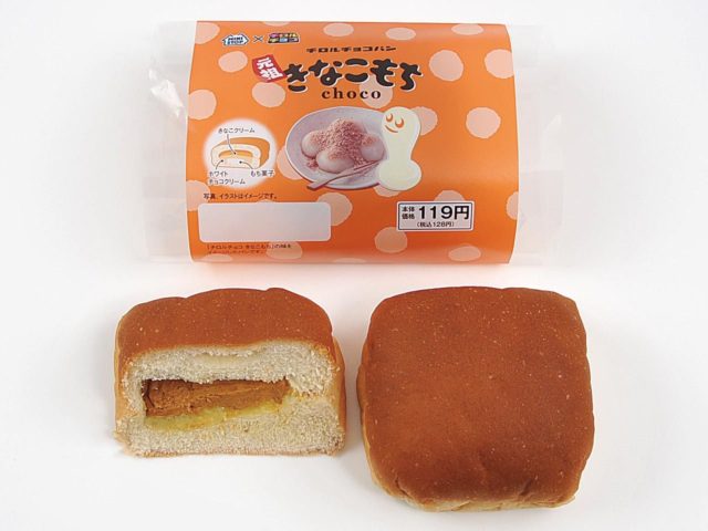 ふんわりとしたパン生地に、きなこクリームとホワイトチョコクリーム、もちフィリングを合わせ、四角形に焼き上げました。香ばしいきなこの豊かな風味と、チョコの甘さがぴったりな菓子パンとなっています。
