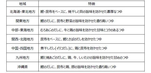 今年も全国を7つの地域に分け、各地域の嗜好にあっただしを利かせたつゆをご用意しました。