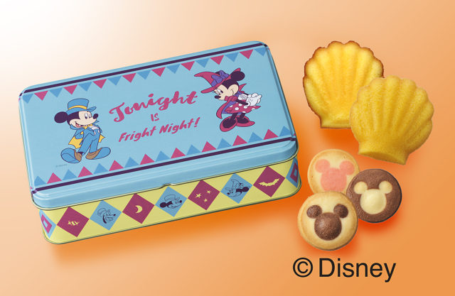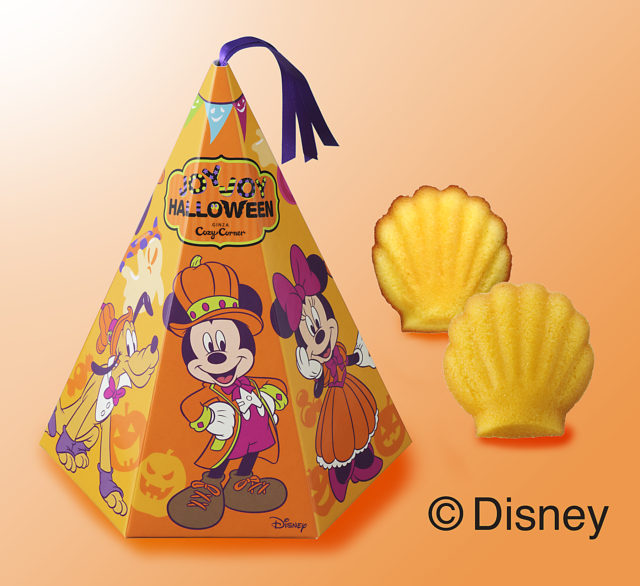 やさしい甘みのマドレーヌとかぼちゃマドレーヌを、ハロウィンコスチュームのミッキー&フレンズがデザインされたとんがり帽子形のパッケージに詰め合わせました。食べたあとは、底面を切り取ってパーティー帽子として使えるようになっています。