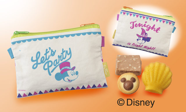 かぼちゃマドレーヌ、ミッキーのシルエット柄クッキー、焼きショコラ(ミルクアーモンド)を、ハロウィンコスチュームのミッキー&フレンズがデザインされたポーチに詰め合わせました。リユースできるコットン製のポーチは2口タイプ。リバーシブルなので、その日の気分で好きな柄を楽しめるようになっています。