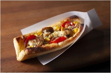 『BEYOND PIZZA』は本格的なピザスタイルを実現する一方、気軽に食べられるスリムなスティックタイプに仕上げました。細長い船形の形状に仕立てたピザ生地は、BEYOND TOFU の上にさらにトッピングを加えても食べやすい形になっており、ワンハンドで食べることが可能となっています。