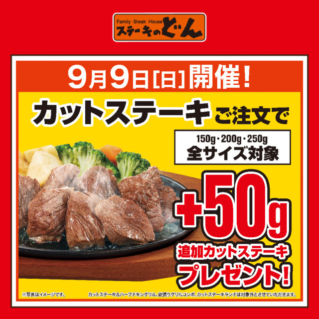 ステーキのどん・どん亭・フォルクスの全店で実施します。