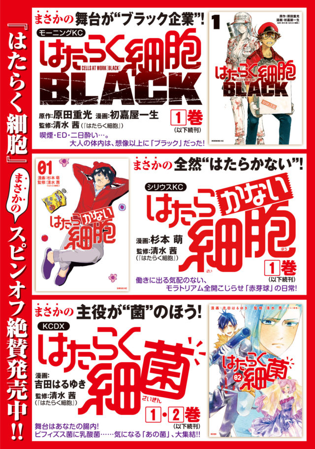月刊少年シリウス(講談社)にて連載中の『はたらく細胞』(清水茜)は、シリーズ累計250万部を突破し、TVアニメもTOKYO MX、MBS、BS11にて好評放映中です。