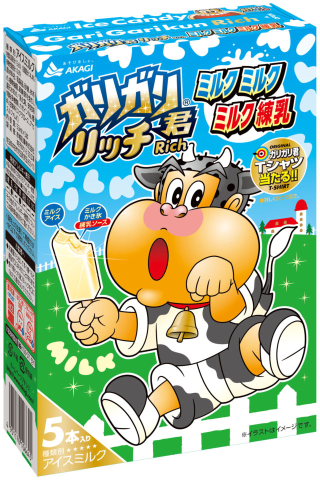 ガリガリ君リッチミルクミルクミルク練乳は、ミルクアイスキャンディーの中に、ガリガリっとした食感が特徴の練乳風味の濃厚なミルクかき氷と、かき氷の中に練乳を入れたアイスキャンディーです。