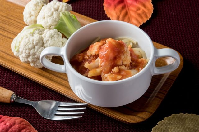 カリフラワーとベーコンのトマトソース
