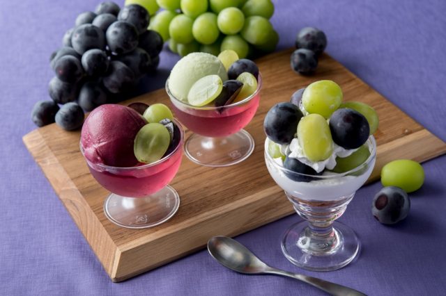 内容 : シャインマスカット/巨峰が食べ放題。その他にスペシャルジェラート(2種)やぶどうのゼリー、ぶどうのフレーバーウォーター、自分で作れるぶどうパフェなど。