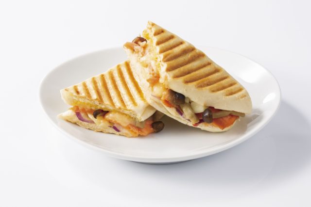 定番メニューであるパニーニからは「サーモンときのこのグラタン仕立て」(480円)が登場。