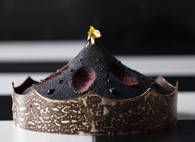 ピスタチオのタルト生地に、ブラックベリー、ブルーベリーとカシスのジュレを配し、ダークチョコレートのムースで覆いました。ダークチョコのビターな味わいと酸味、そして不気味な存在感を放つケーキはハロウィーン・パーティーにおすすめとなっています。