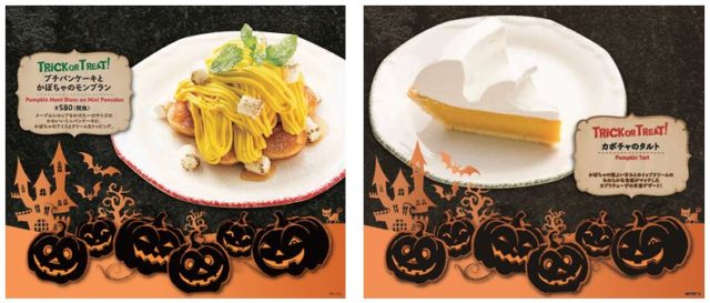 ひとつは、初登場となる期間限定メニュー「プチパンケーキとかぼちゃのモンブラン」(580円・税抜)、もうひとつはカプリチョーザの定番デザートとして長年人気の「カボチャのタルト」(490円・税抜 ※一部店舗では価格が異なります)を提供します。