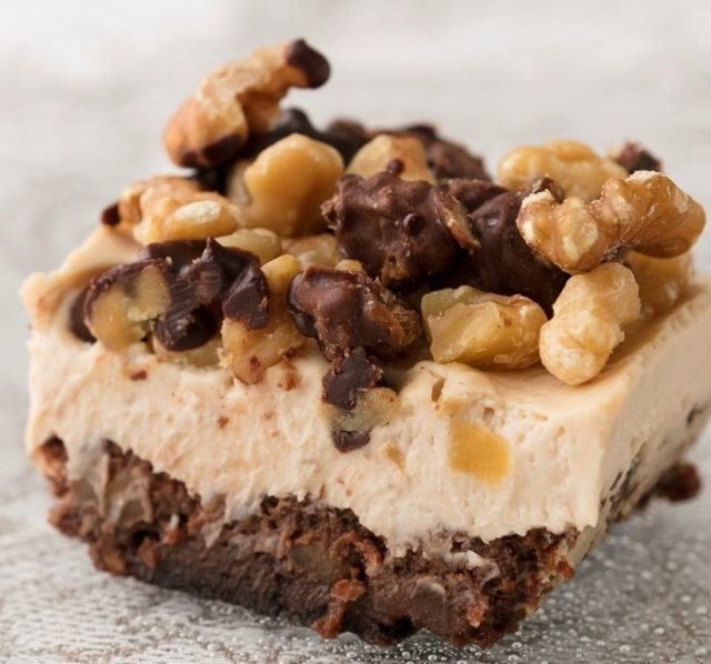 生地に砕いたくるみとくるみパウダーを混ぜ込み、カリッとした食感のくるみ入りチョコロシェをトッピングしています。