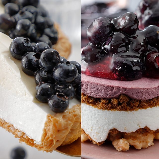 「フレッシュブルーベリー&ヨーグルトレアチーズケーキ」は、サクサクとした食感のパイ生地に、ヨーグルトムースとレアチーズを重ね、生のブルーベリーをトッピングしたスイーツで、ブルーベリーの甘酸っぱい酸味や、みずみずしい果実感が贅沢な味わいです。レアチーズケーキとヨーグルトムースの2層構造とたっぷりのブルーベリー果実が贅沢な気分にさせてくれます。価格:¥540(税別)