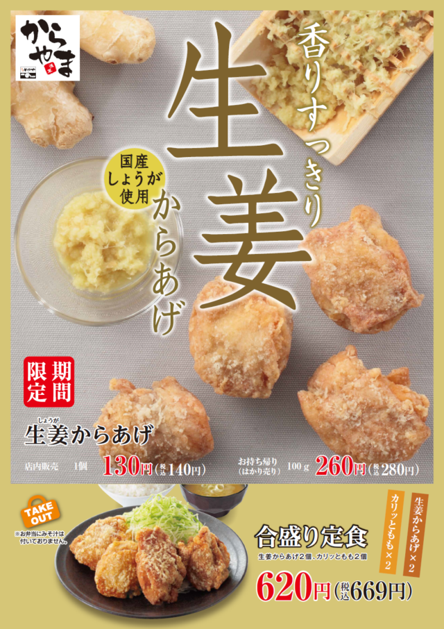 からあげ専門店「からやま」などを運営するエバーアクション株式会社は、本日、2018年9月21日(金)より国内における「からやま」と「からあげ縁」において、「生姜からあげ」の販売を開始します。