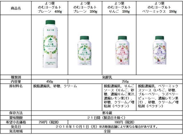 よつ葉乳業株式会社は、「よつ葉のむヨーグルト」を2018年10月1日より新発売します。