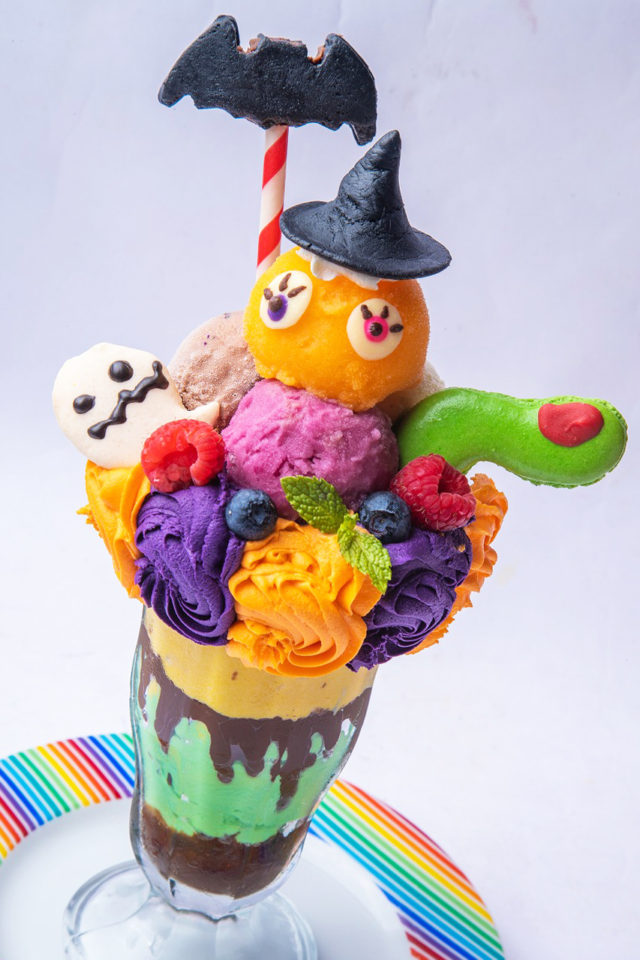 いよいよハロウィンシーズン到来。今年はMONSTER達の賑やかな声が聞こえてきそうな明るく楽しいハロウィンがテーマ。ハロウィン限定フードは、トレンドのレインボーカラーを使った“派手カワイイ”メニューが勢ぞろい。中でも大人気の定番パフェはGhostをテーマにしたハロウィン仕様になって登場。かぼちゃのプリンやお化けのマカロン、こうもり型のロリポップなどが詰まった限定パフェとなっています。この時期にしか味わえないハロウィンメニューが楽しめるようになっています。