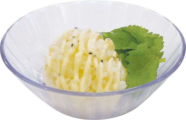 そして、シメにはチーズソースと三葉をトッピングした、『黄金塩らぁ麺』専用の『追いしゃり』と一緒に食べることができるようになっています。