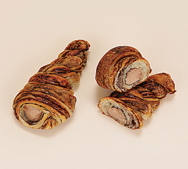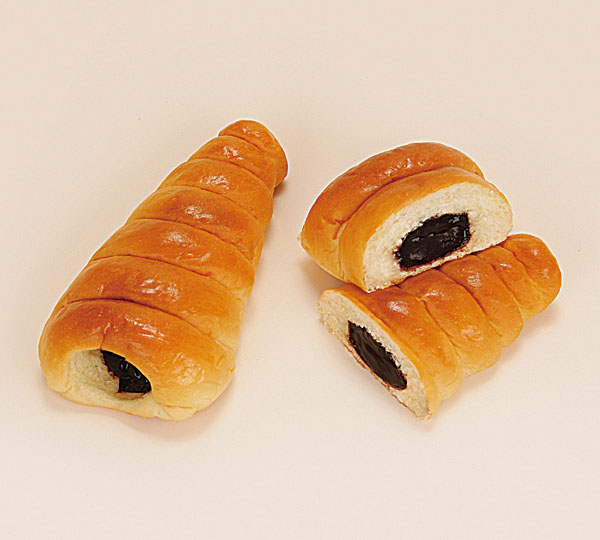 内容:ビター感のあるチョコクリームを織り込んだ、歯切れのよいデニッシュ生地をコロネ状に巻き、ミルクチョコレート風味の甘みのあるチョコホイップを絞りました。ホイップとパンの食感がポイントとなっています。