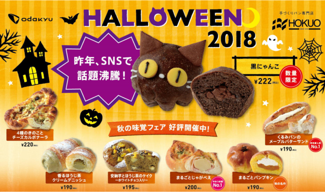 小田急グループでパンの製造・販売を行っている株式会社北欧トーキョー(店舗名:「HOKUO」)では、2018年10月9日(火)から10月31日(水)まで、ハロウィン限定商品「黒にゃんこ」を販売します。