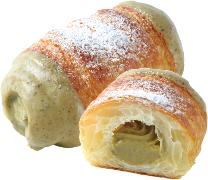 デニッシュ生地にほうじ茶クリームを絞り、ほうじ茶チョコをつけて仕上げました。