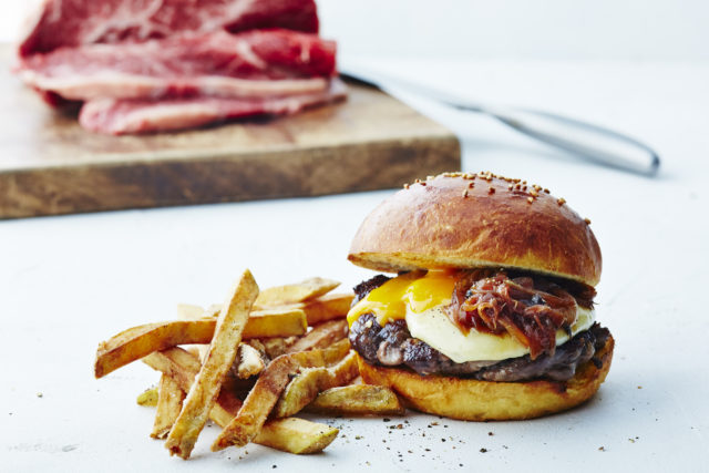 日本の食材を掛け合わせた、バンズ、ソース、チーズ、野菜が、黒毛やぎゅをアメリカンサーロインのパティを引き立てます。それぞれの旨みが複雑に絡み合う、究極のハンバーガーとなっています。