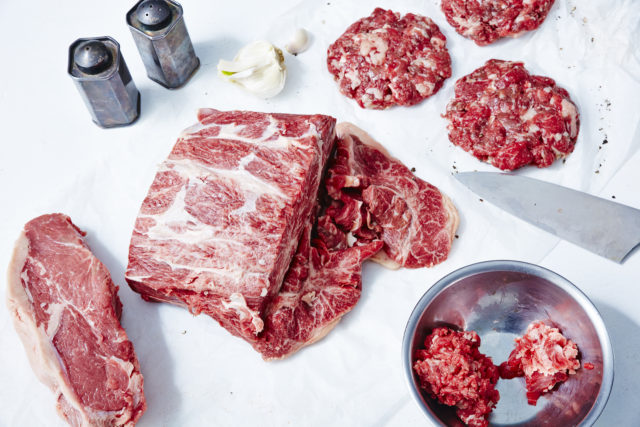 黒毛和牛ロースとウデ肉、アメリカンビーフのサーロインを1:1:2の割合で配合。スジと脂を丁寧に取り除き、塊肉を包丁でカット。ステーキのような食べ応えを残し、食べ応えのあるパティに仕上げました。
