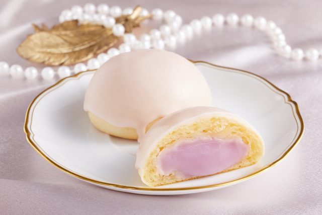 国産の紫いものペーストを使用したホイップカスタードを、もっちりとした食感の生地で包み込みました。生地をミルクチョコでコーティングし、ピンク色に仕上げました。天使の羽をイメージしたパッケージとなっています。