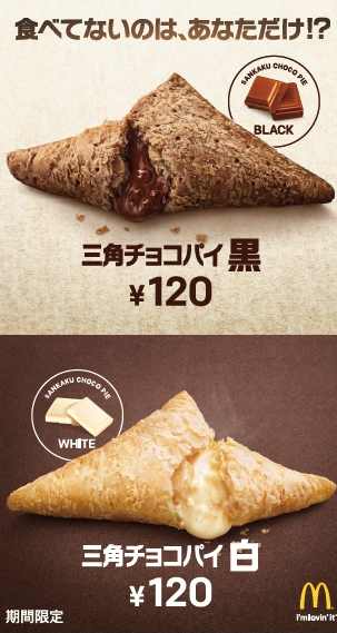 日本マクドナルド株式会社は、マクドナルドの冬の人気定番スイーツ「三角チョコパイ」を今年も発売します。今年は、「三角チョコパイ 黒」と「三角チョコパイ 白」の2商品を、10月26日(金)より全国のマクドナルド店舗にて期間限定販売します。