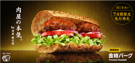 日本サブウェイ株式会社が展開するサンドイッチ・チェーン『サブウェイ』はこのたび、岩手県・一関市の株式会社門崎(かんざき)が展開する素材の質にこだわる牛肉の名店『格之進』とのコラボレーションを実現し、同店の人気メニューである「金格ハンバーグ」を使ったサンドイッチ「金格バーグ」「金格DX(デラックス)」を2018年11月30日(金)〜2019年1月8日(火)の期間限定で発売します。また、11月30日(金)に先駆け2018年11月1日(木)〜7日(水)の1週間限定で先行販売を行います。