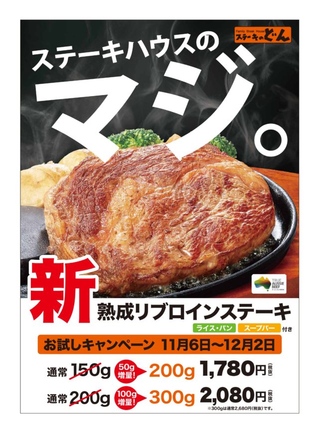 ステーキのどんでは、11月6日(火)「リブロインステーキ」を一新します。
